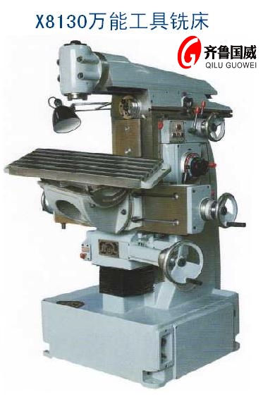 X8130万能工具铣床属于万能性较好的通用机床,适用于铣 削平面,斜面和沟槽等。可供仪器、仪表和机械制 造业中对工具、夹具、模具和具有较复杂形状零件 的半精加工和精加工使用。在本机床装上附属装置如分度头、圆工作台等 还可以加工齿轮、曲面、凸轮等形状复杂的零件。利用数显装置还可在本机床镗座标孔等。
