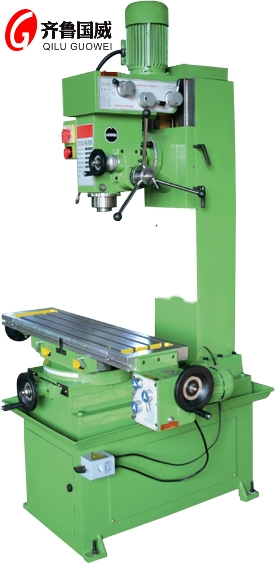 zx50f钻铣床(皮带传动)工作台可纵、横向移动,主轴垂直布置,通常为台式、机头可上下升降,钻铣床外形具有钻、铣、镗、磨、攻丝等多种切削功能机床。主轴箱可垂直平面内左右回转90°,部分机型工作台可在水平面内左右回转45°,多数机型工作台可纵向自动走刀。